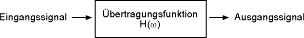 [Abb. 4.1] Filterschema. Das Übertragungsverhalten, beschrieben durch die Übertragungsfunktion, bestimmt den Zusammenhang von Eingangs- und Ausgangssignal eines Filters. Sogenannte Bandpassfilter lassen Schallanteile innerhalb eines durch eine untere und eine obere Grenzfrequenz definierten Frequenzbands passieren. Bandpassfilter werden durch ihre Mittenfrequenz und Bandbreite beschrieben [siehe Abb. 4.3 und 4.4].